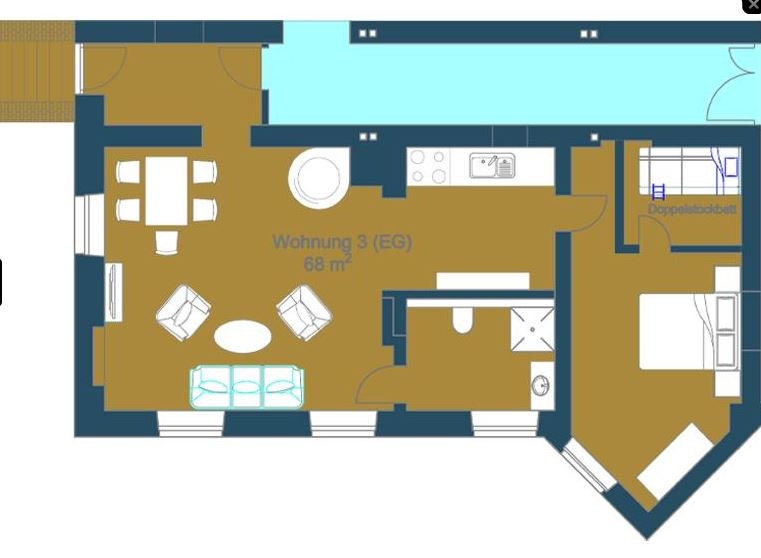 Die Ferienwohnung ist für 4 Personen geeignet und bietet die Möglichkeit einer Aufbettung für weitere 2 Personen. Aus der Wohnung gibt es einen direkten Zugang zum privaten Gartenbereich und ist somit auch für Hunde geeignet.