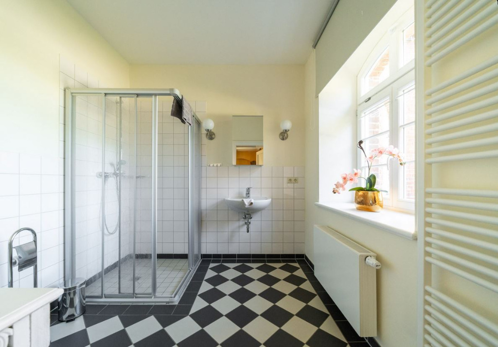 Diese große sehr gemütliche Ferienwohnung hat einen tollen Blick in den Park . Sie liegt im ersten Obergeschoss, der belle Etage mit sehr hohen Decken. Die Ferienwohnung hat eine Fläche von 64 m².