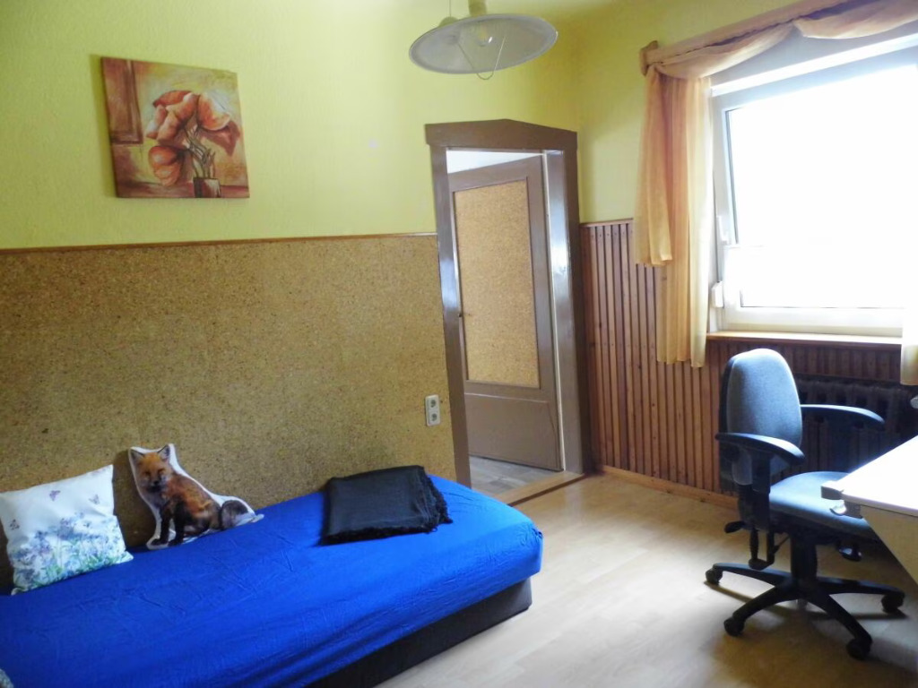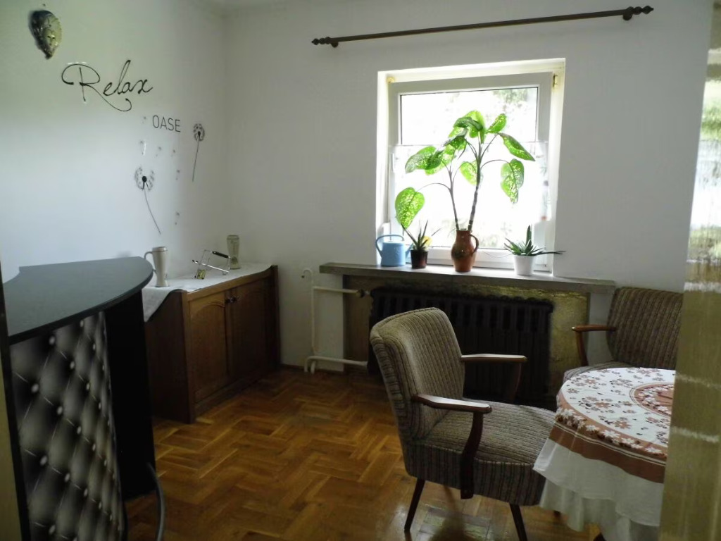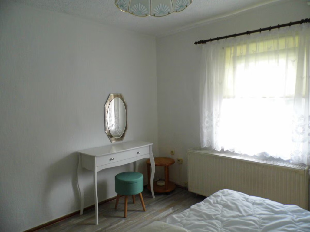Alleinstehendes komplett eingezäuntes Ferienhaus für 2 - 8 Personen, mit 140 qm Wohnfläche , gehobene Küchenausstattung, Barraum an Wohnzimmer angrenzend, 5 Schlafzimmer, 3 mal mit Doppelbett und 2 mal Einzelbetten, Extraraum mit Schreibtisch als Kinderbereich oder Arbeitsplatz nutzbar, komplett eingezäunt , Grillplatz mit Sitzecke außen, inmitten des westlichen Thüringer Waldes. Das Bad hat eine ebenerdige Dusche.