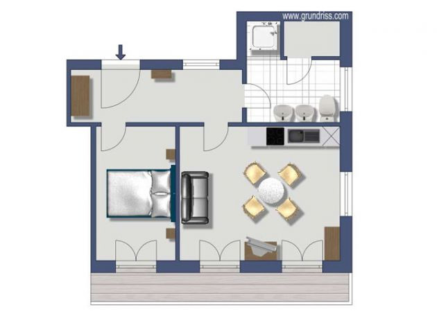 Apartment, Schlafräume: 1, Schlafplätze: 4