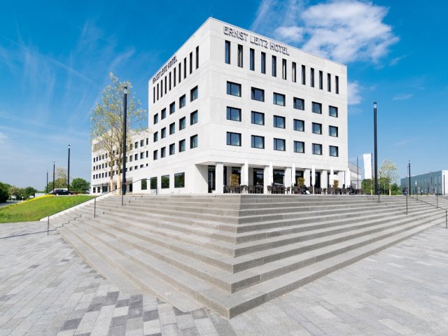 Das 2018 neu eröffnete 4 Sterne Superior Hotel liegt eingebettet im Ernst Leitz Park und bietet mit seinen 129 Zimmern, dem Restaurant Oskar`s und dem Fitnessbereich mit Sauna höchsten Komfort.