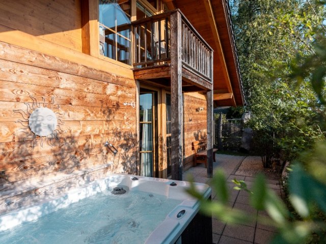 Die Ferienhäuser mit umzäuntem Privatgarten passen sich Ihren Wünschen in Größe und Ausstattung an – alle mit Whirlpool und Sauna und Ihrem eigenen Parkplatz direkt am Chalet.