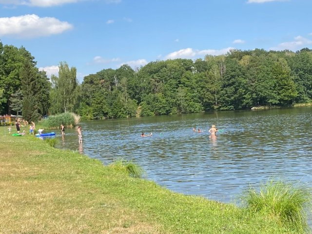 Urlaub mit Hund vor den Toren der Stadt im Städtedreieck Leipzig-Dresden-Chemnitz mitten im Wald an einem Badesee Ferienwohnung in Alleinlage ; ebenerdig mit kleiner Frühstücksterrasse